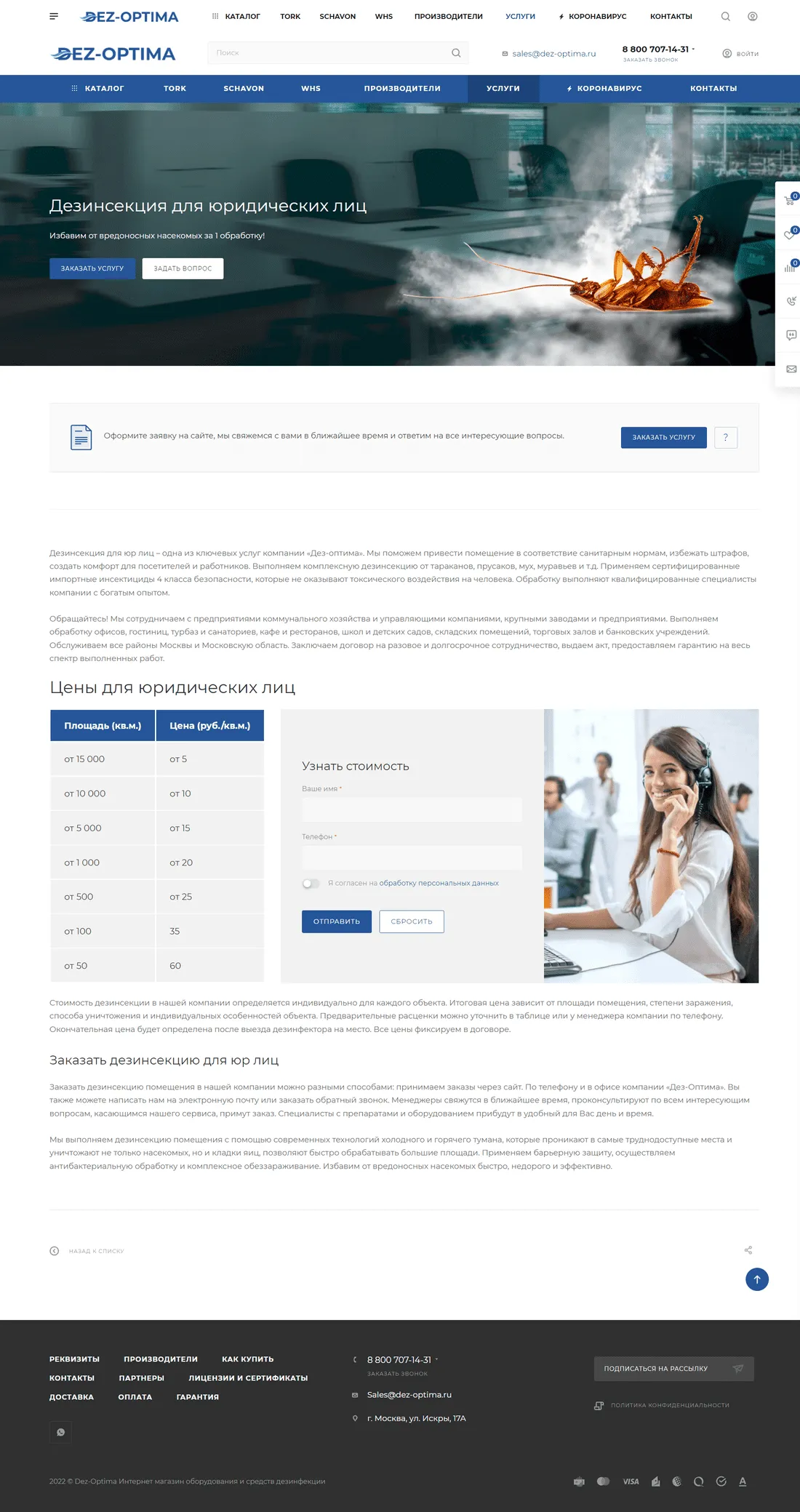 Проанализировали нишу магазинов оборудования, средств дезинфекции. Собрали семантическое ядро, проработали структуру сайта.