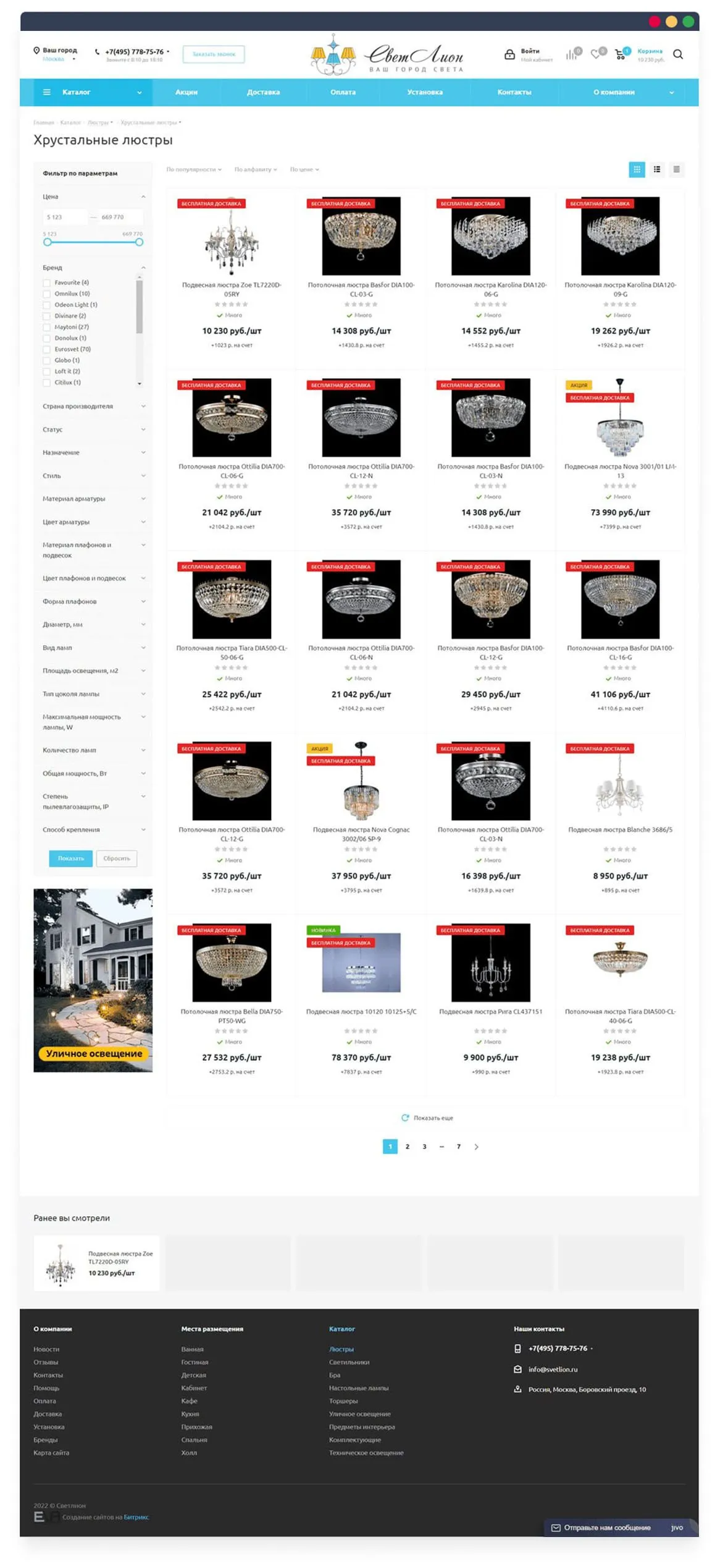 «СветЛион» — интернет-магазин осветительного оборудования. На сайте представлено более 50 000 наименований продукции от более 80 брендов. В каталоге товаров можно найти люстры, светильники, прожекторы, настольные лампы, зеркала с подсветкой и многое другое. Продажа осуществляется не только по Москве, но и в другие регионы. Сайт ориентирован на частных лиц, дизайнеров и строительные компании.